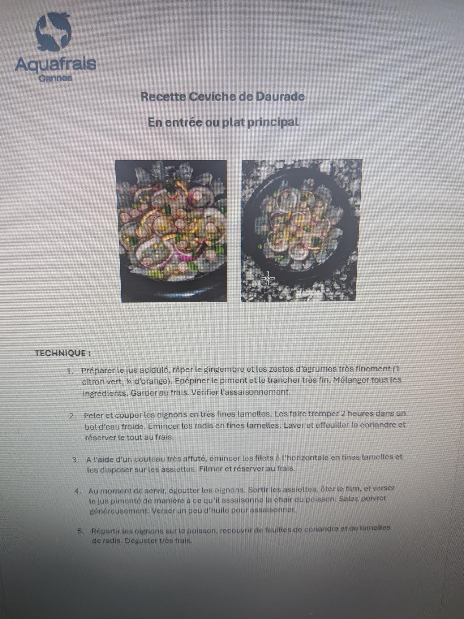 Daurade Royale d'élevage artisanal en Baie de Cannes Poissons entiers Poissons mareyés : filets...
